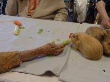 - Nourrissage des animaux : Biberons, alimentation par les aliments frais, les graines. Jeux sur table avec les animaux.